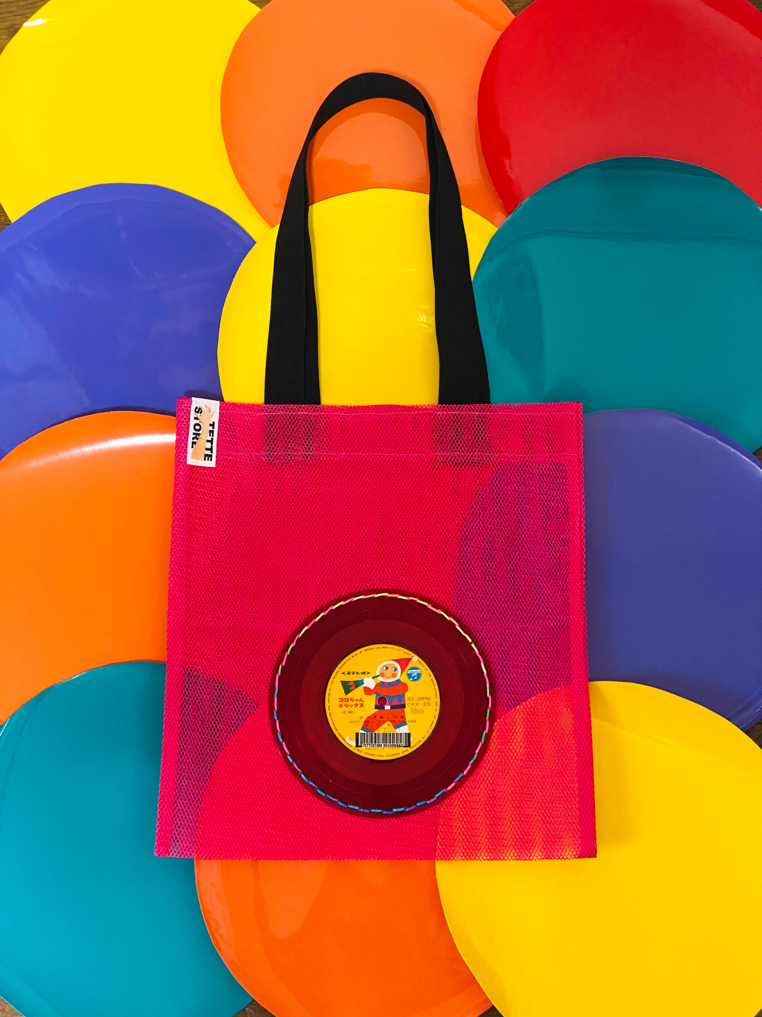 7インチレコードメッシュバッグ・ピンク×カラー盤